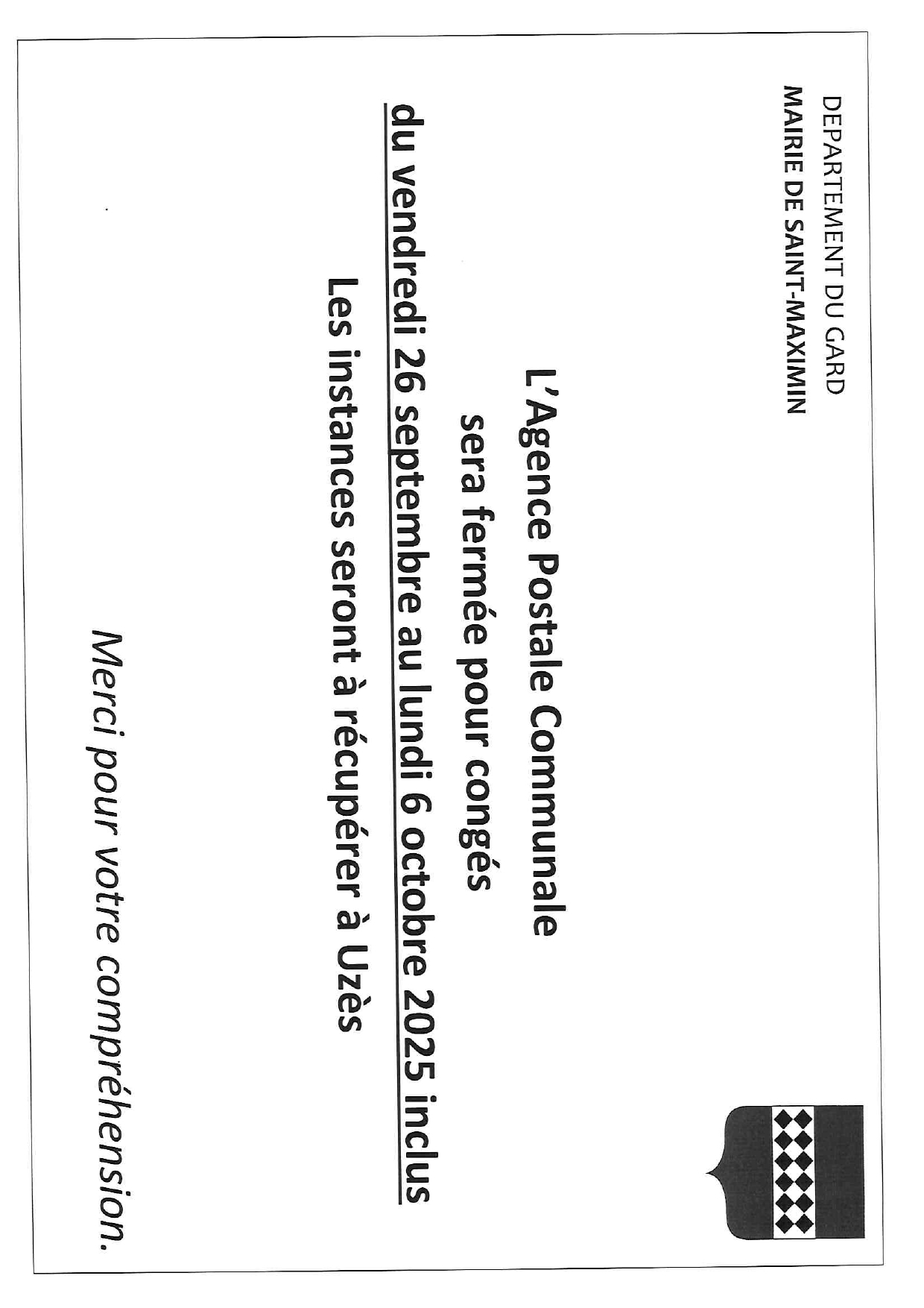 Vous êtes ici : Accueil > Fermeture pour congés de l'Agence Postale