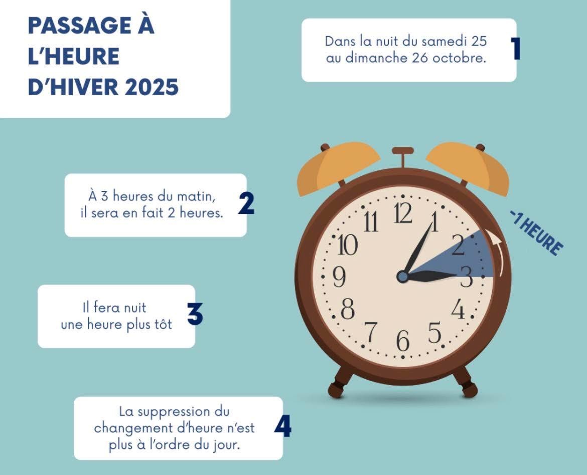 Vous êtes ici : Accueil > Passage à l'heure d'hiver ce dimanche 26 octobre 2025 !
