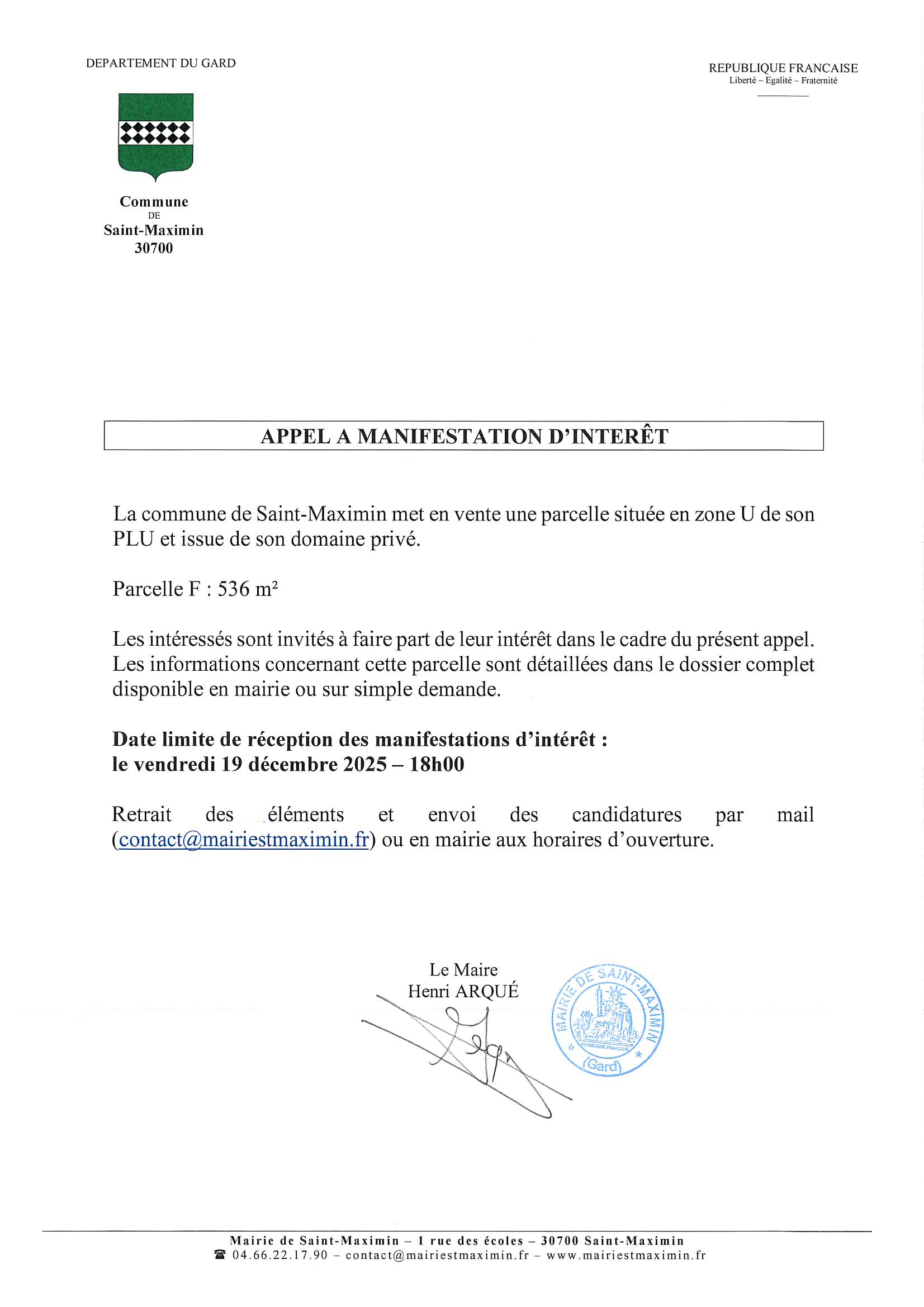 Vous êtes ici : Accueil > Appel à manifestation d'intérêt : vente de parcelle constructible