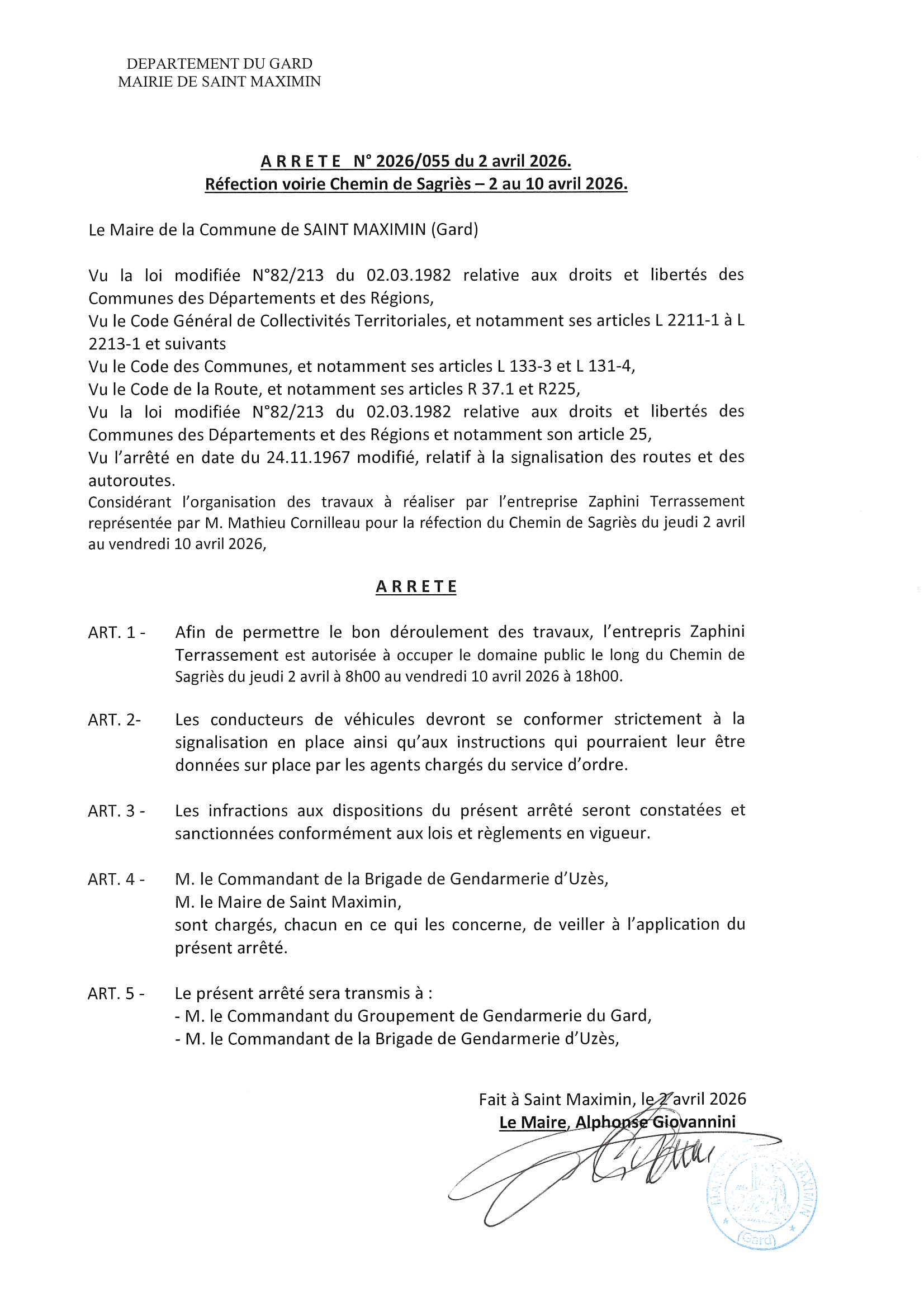 Vous êtes ici : Accueil > Réfection du Chemin de Sagriès du 2 au 10 avril