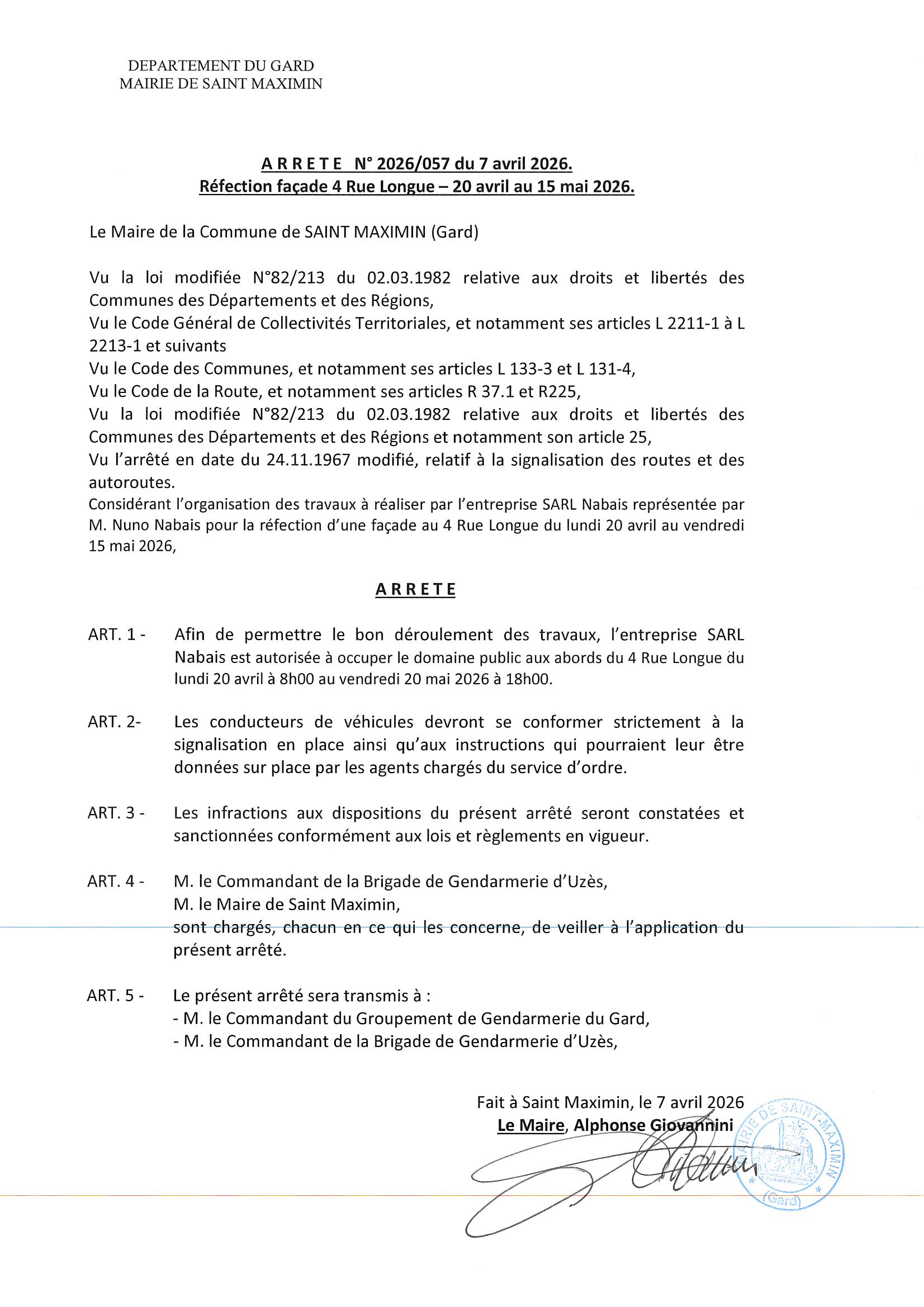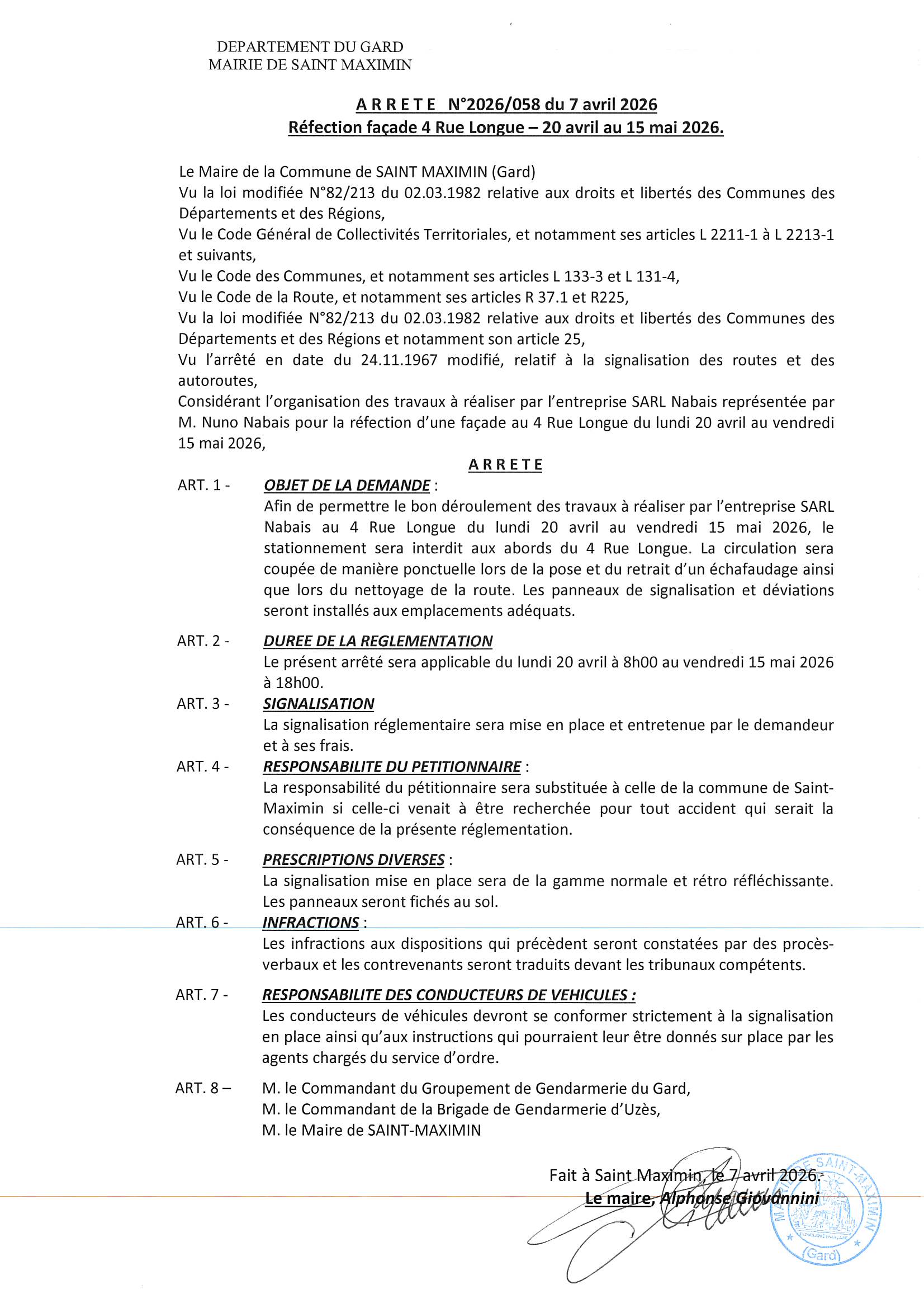 Vous êtes ici : Accueil > Travaux au 4 Rue Longue du 20 avril au 15 mai 2026