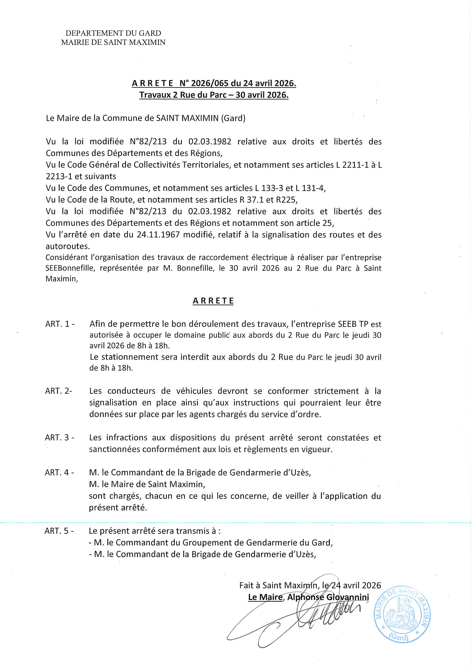 Vous êtes ici : Accueil > Travaux à venir : Rue du Parc 30 avril 2026