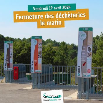 Vous êtes ici : Accueil > Fermeture exceptionnelle de la déchèterie vendredi 19 avril au matin